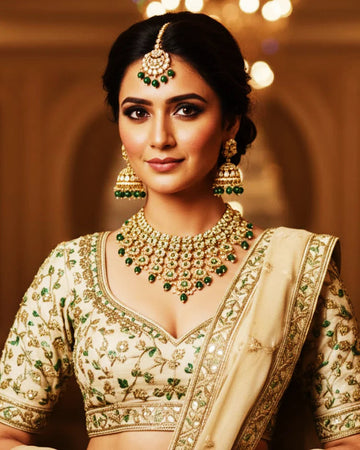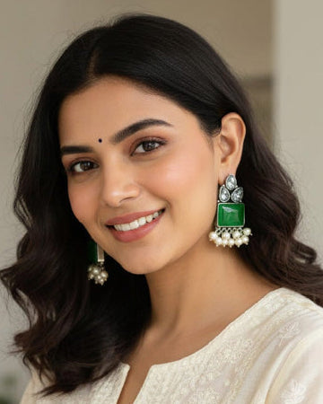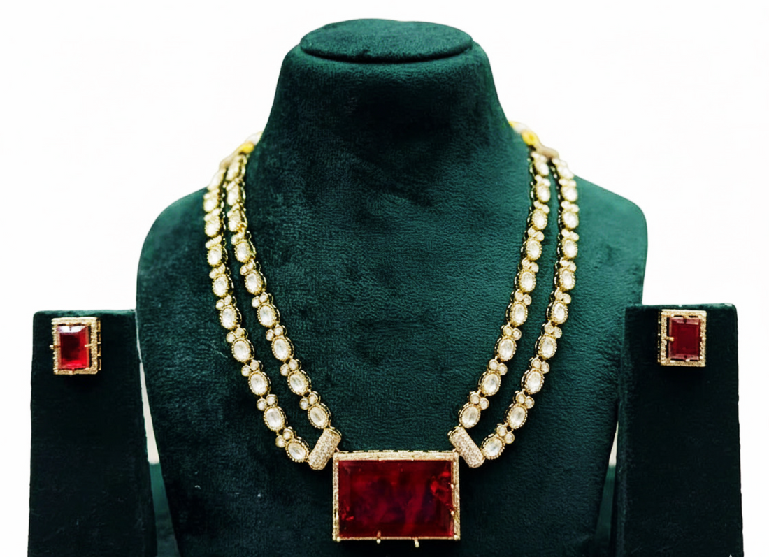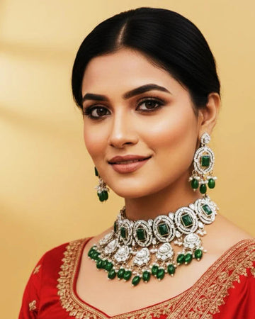 • Traditional (Heritage Wear): Designed using Copper and Brass alloys to achieve the intricate detailing seen in Oxidised, Kundan, and Temple styles. These pieces feature Moissanite, Polki beads, CZ stones, and Glass Kundan, finished with Meenakari (Enamel) and decorative beads.