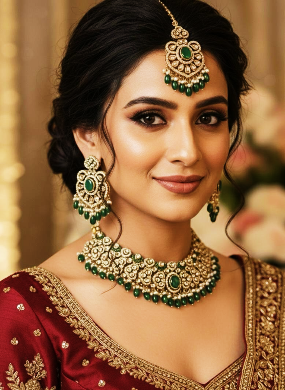 Embrace timeless elegance with the Aaravi Kundan Bridal Set, beautifully crafted for brides who love...