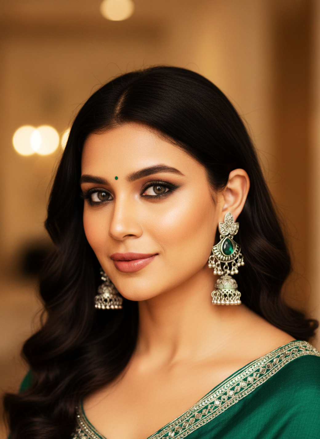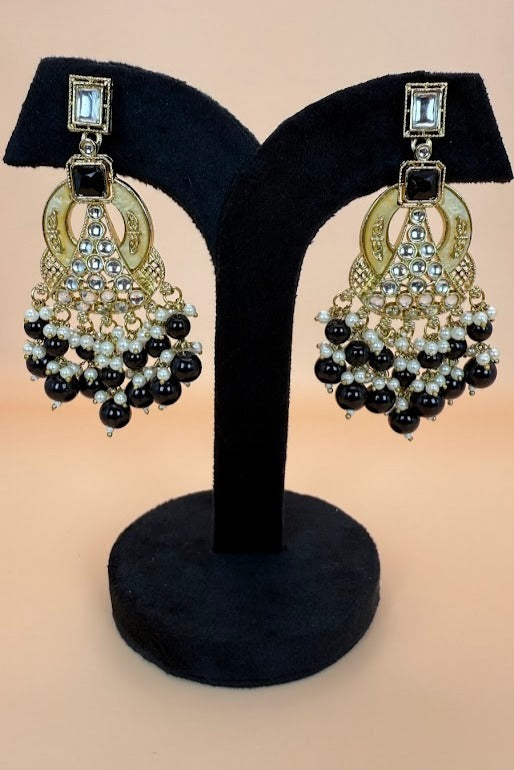 These earrings are a striking and elegant fusion of traditional Indian design and contemporary style....