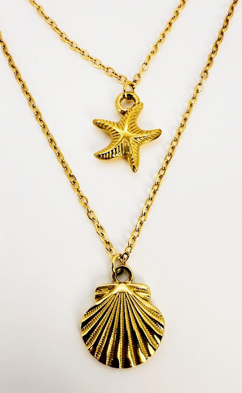 This is a charming and playful layered necklace with a distinct ocean-themed design. The piece...