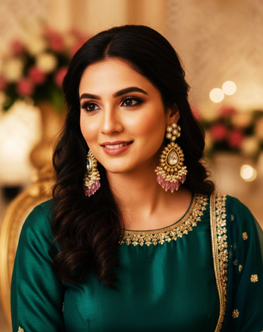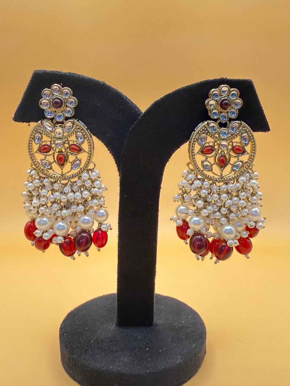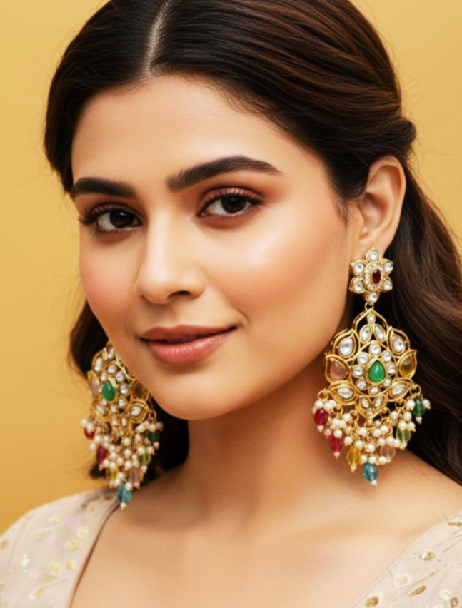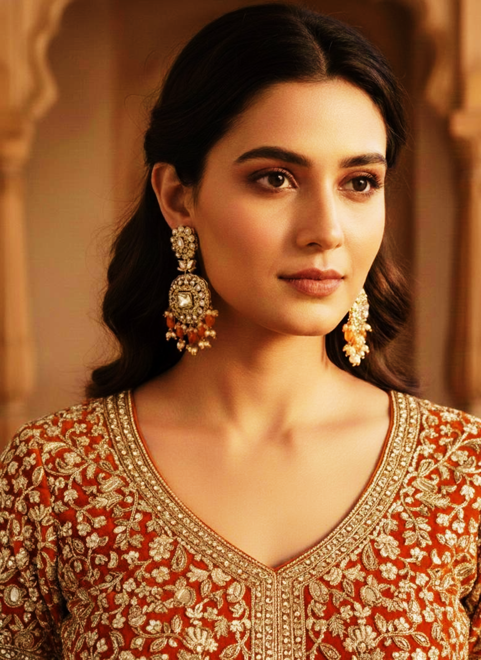 Elevate your look with the timeless charm of our Mayra Kundan Pearl Earrings. Designed with...