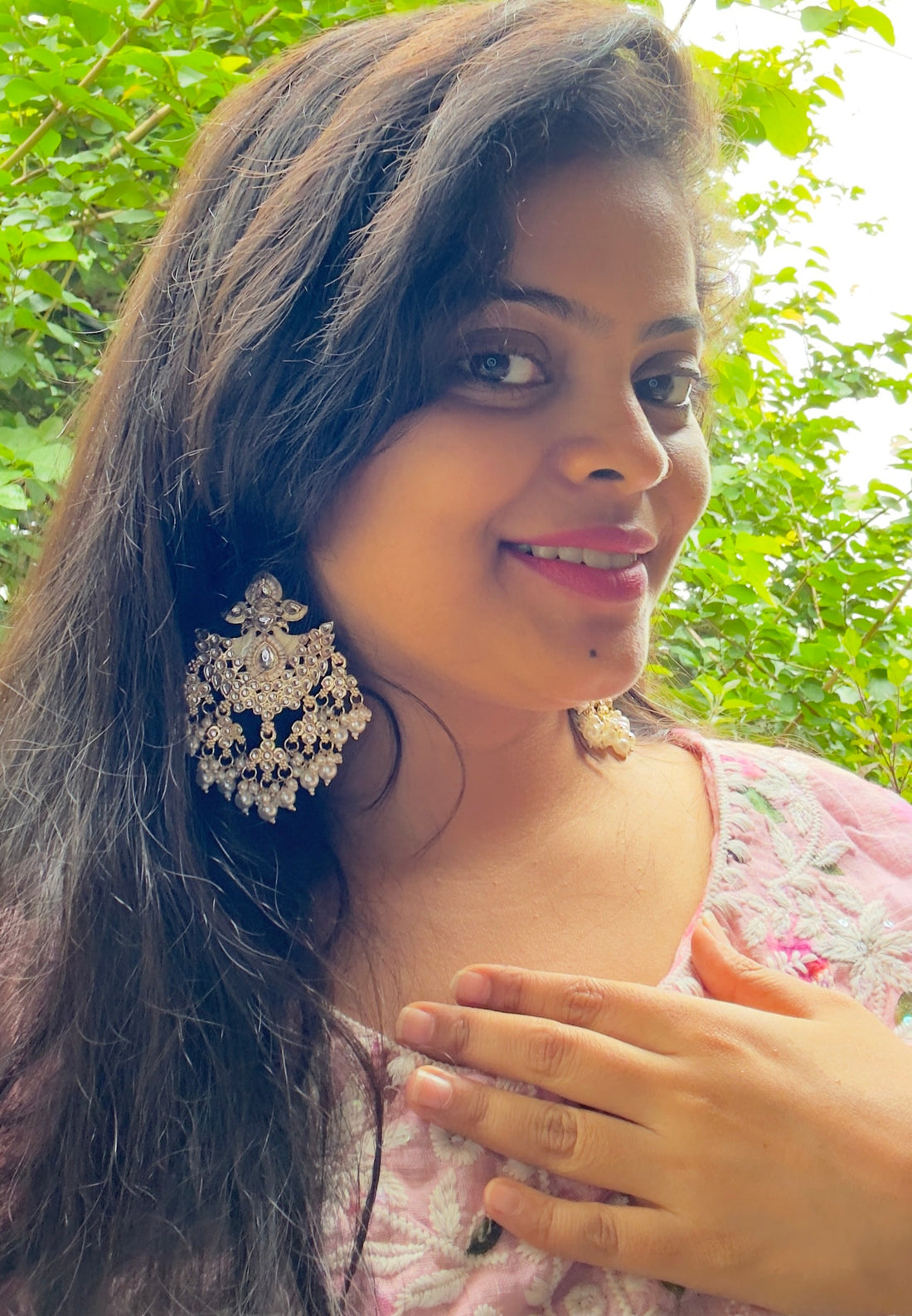 Elevate your ethnic ensemble with the Yashvi Moissanite Earrings, a stunning fusion of regal heritage...