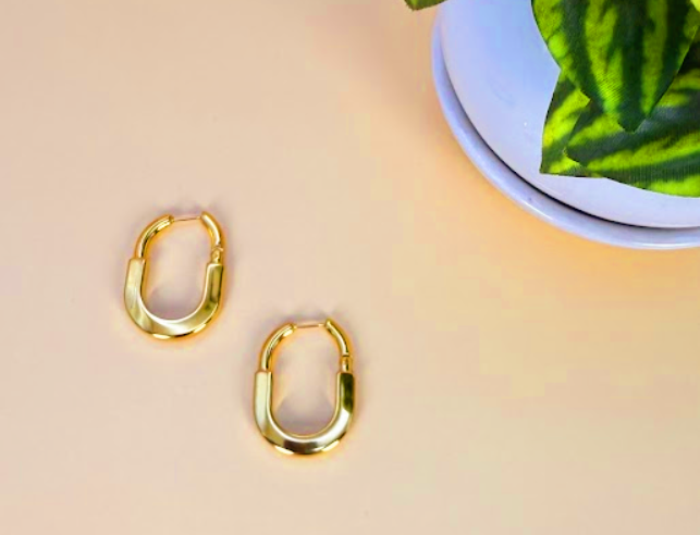 Elevate your everyday style with these elegantly designed U-Shaped Gold Hoops. A sophisticated departure from the traditional circular hoop, their sleek, open "U" silhouette offers a fresh and modern aesthetic. The earrings feature a beautifully polished, gold-plated finish with a subtle textured surface that catches the light with every movement.