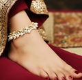Add a touch of royal elegance to your traditional look with the exquisite Heer Payal. Designed with intricate gold-toned detailing, shimmering stones, and clusters of lustrous pearls, this payal blends classic charm with timeless beauty.