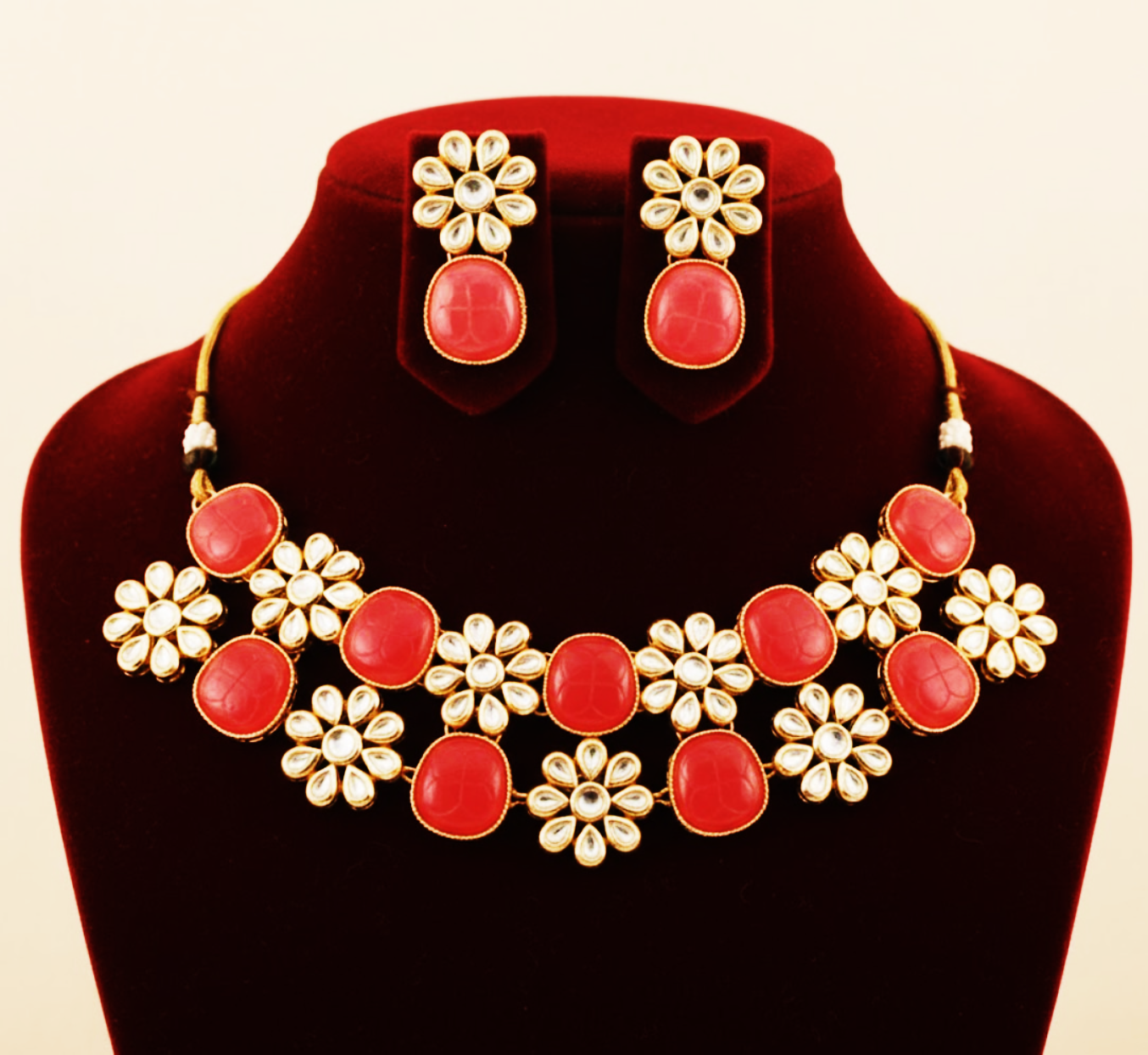 Grace your festive and wedding looks with the timeless elegance of the Kusum Kundan Necklace Set. Crafted with delicate floral kundan motifs and highlighted by soft pink stones, this necklace set reflects classic royal charm with a feminine touch. Perfectly balanced between tradition and sophistication, it adds a refined glow to sarees, lehengas, and ethnic ensembles.