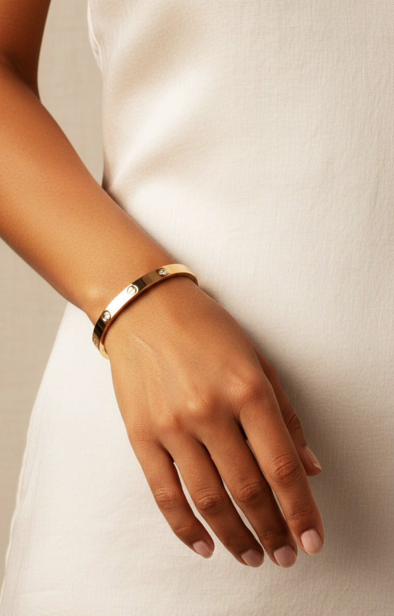 An oval cubic zirconia kada is a stylish and versatile accessory that gets its distinct character from the color of its base metal. The three most popular finishes—golden, rose gold, and silver—each lend a unique aesthetic to the piece, allowing it to be styled for various occasions and personal preferences. Golden Oval Cubic Zirconia Kada This type of kada offers a classic, timeless, and luxurious look.