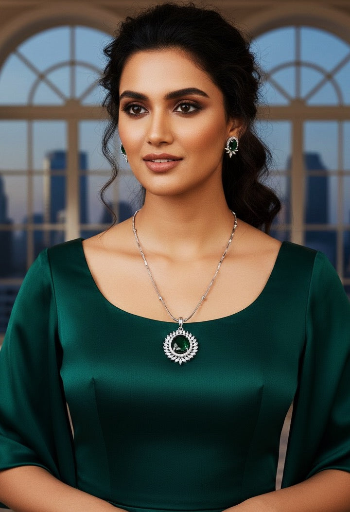 Embrace the refreshing allure of nature with our Peridot Charm Necklace Set. This captivating ensemble combines the vibrant green of peridot-inspired stones with brilliant white sparkle, creating a look that is both striking and elegant.