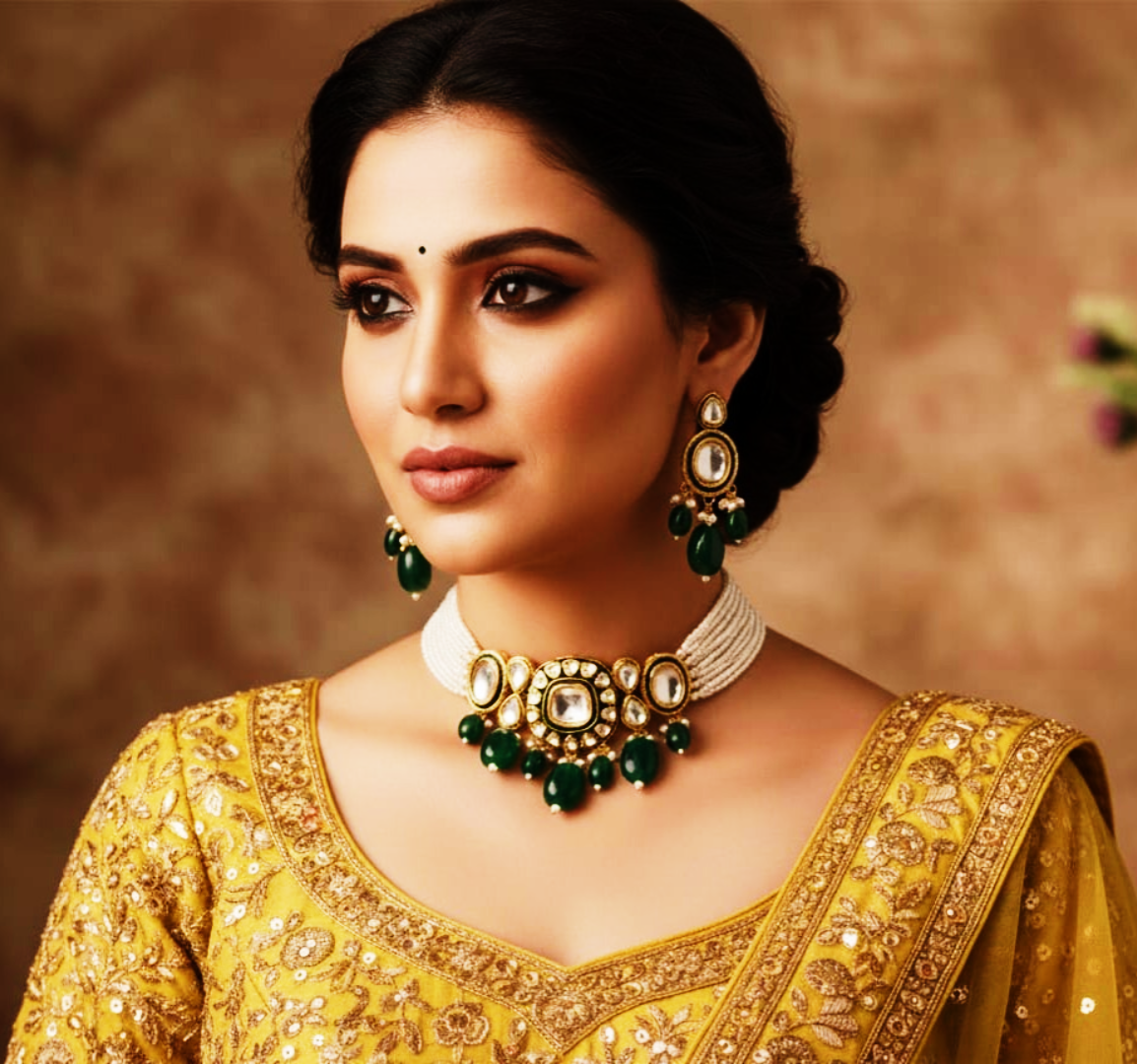• Traditional (Heritage Wear): Designed using Copper and Brass alloys to achieve the intricate detailing seen in Oxidised, Kundan, and Temple styles. These pieces feature Moissanite, Polki beads, CZ stones, and Glass Kundan, finished with Meenakari (Enamel) and decorative beads.