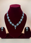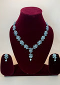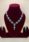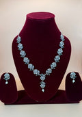 The necklace is adorned with beautifully crafted roses, each detailed to perfection, while subtle hints of Green ,Mint green, light pink, and ruby green accents add a soft, romantic touch. The matching earrings complete the look, making it a perfect ensemble for festive occasions, weddings, or elegant evening events.