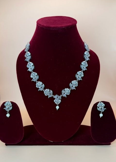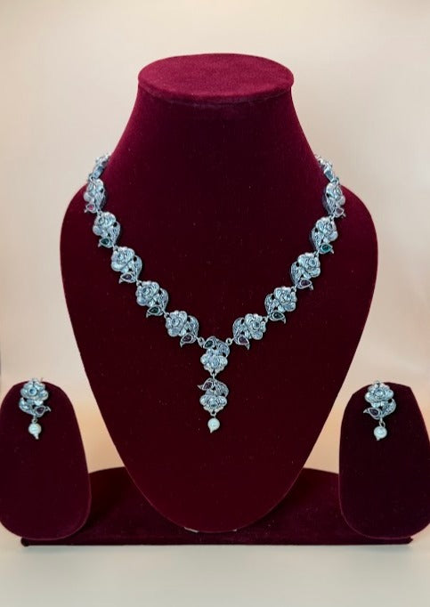 Rose Floral Oxidized Necklace Set